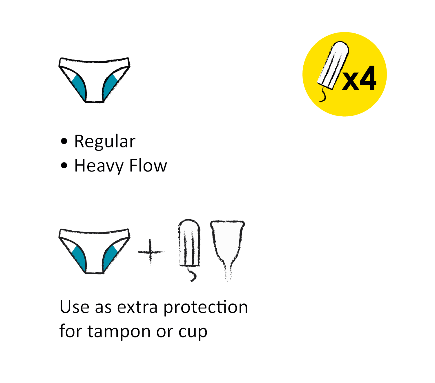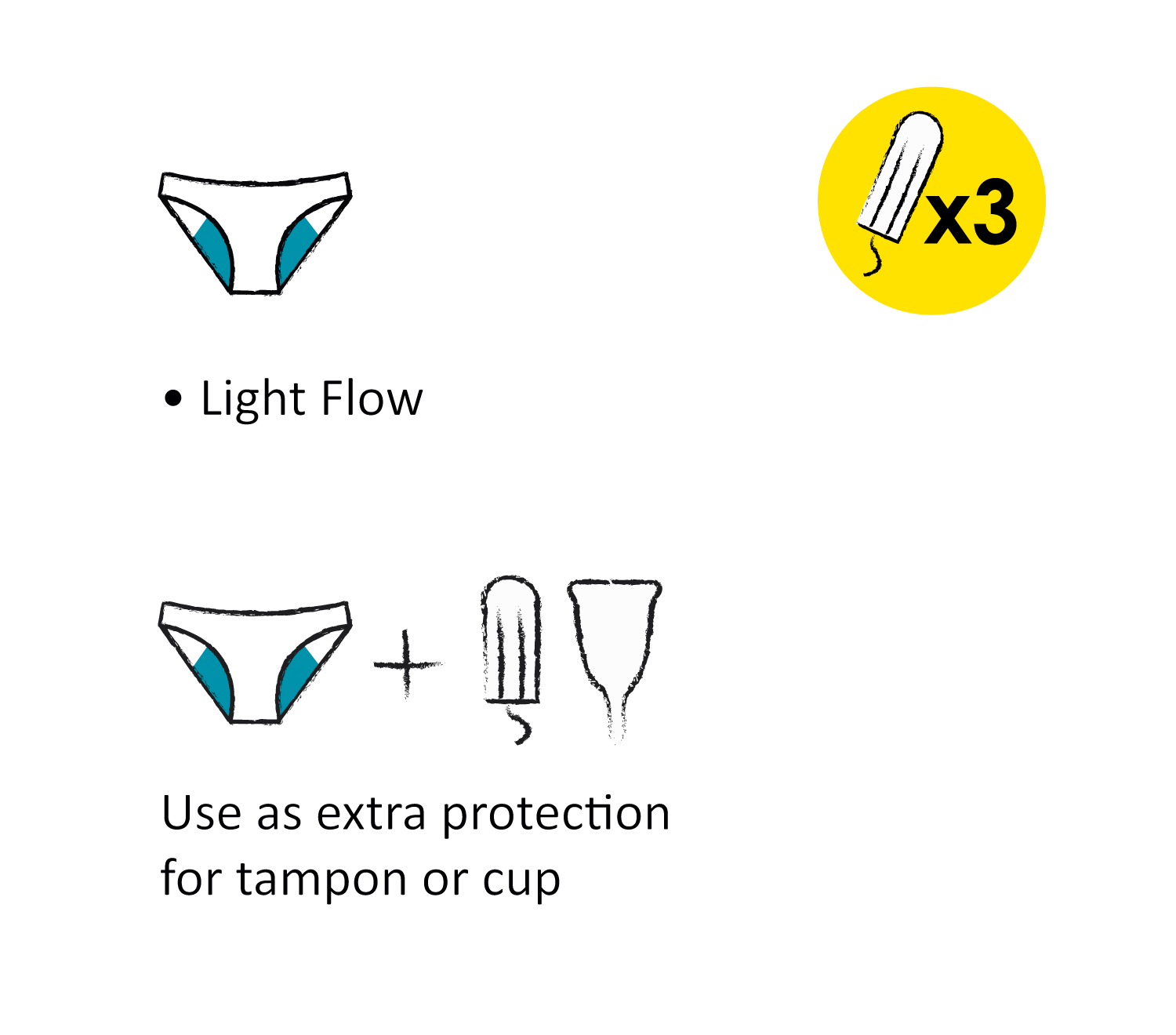 - Use as extra protection for tampon or cup