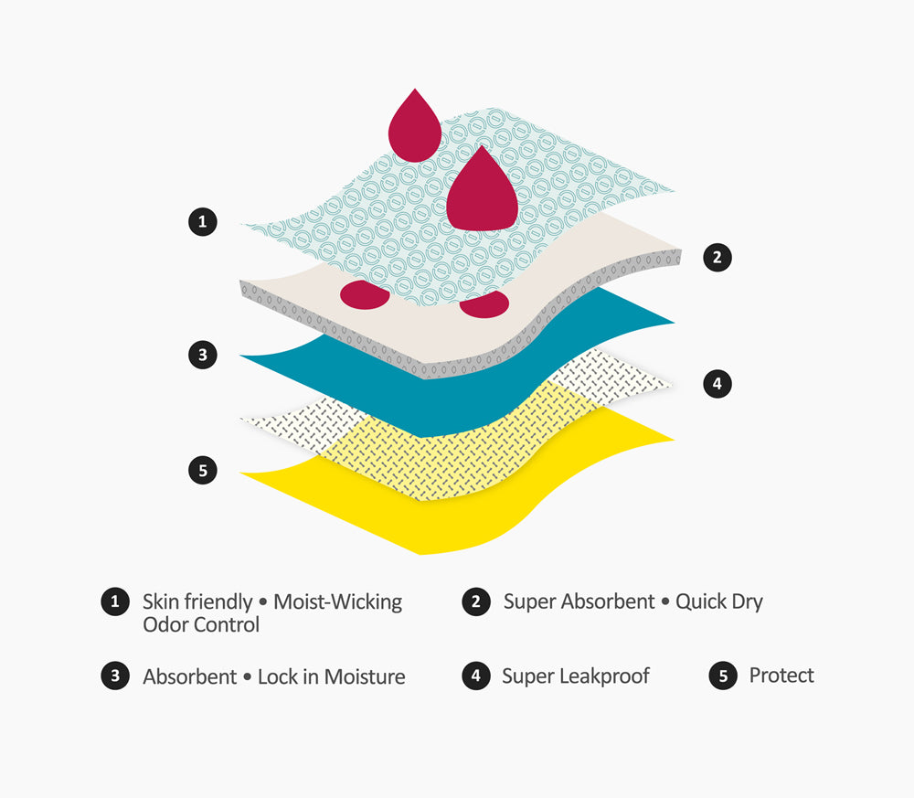 Our panties use state-of-the-art technology inside our 5 layers of fabric for ultimate comfort & protection.