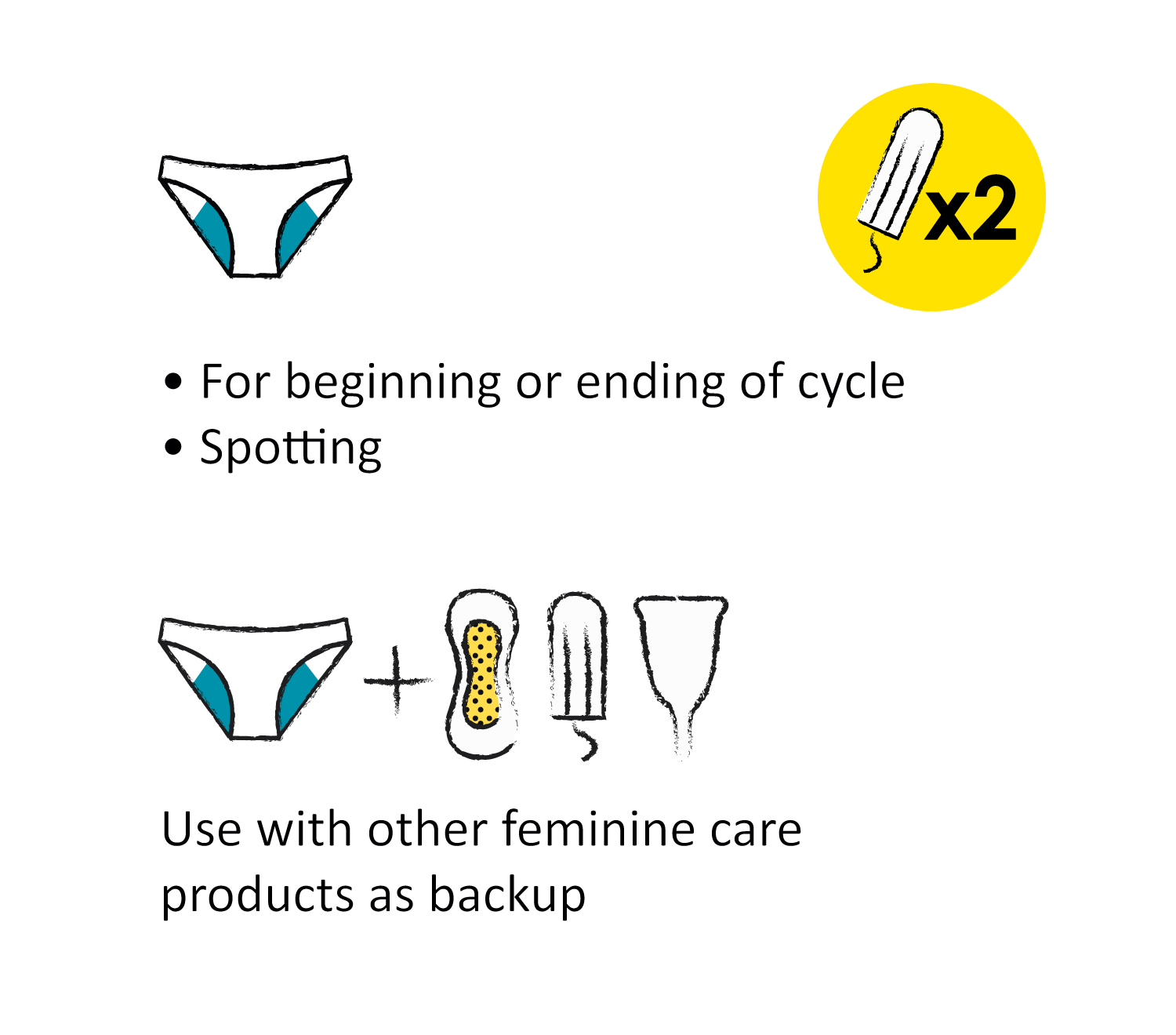 - Use with other feminine care products as backup