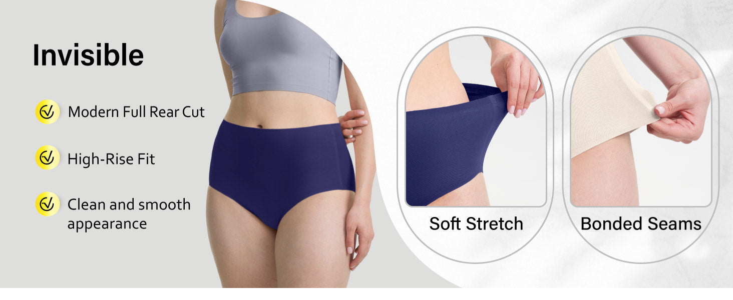 High-Waisted: Features fused seams for ultimate comfort and a smooth silhouette, ensuring no muffin top. Enjoy the classic fit without the bulkiness of traditional full briefs..